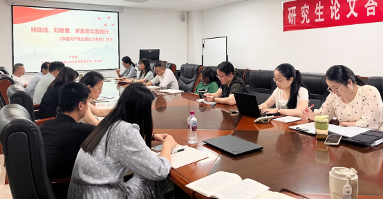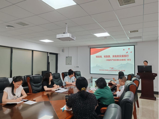 2024年6月19日下午,流行病与卫生统计学系教职工在学院B328会议室召开了主题为“明底线、知敬畏,求真务实重践行”的《中国共产党纪律处分条例》专题学习会,雷先阳书记及系全体教职工参会,系副主任、职工第一党支部书记严俊霞老师主持会议。