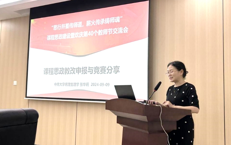 2024年9月9日,金秋送爽,恰逢教师佳节前夕,tapplay,tapplay官网,tapplay登录入口职工第一党支部携手tapplay官网教师教学发展中心,联合举办以“思行并蓄传师道,薪火传承铸师魂”为主题的课程思政建设暨欢庆第40个教师节交流会。活动特别邀请到基础医学院张华莉教授开展题为“课程思政教改申报与竞赛分享”的讲座。学院党委书记雷先阳、院长胡国清、副院长李杏莉、秦家碧,以及30余位教师出席会议,本次会议由李杏莉主持。