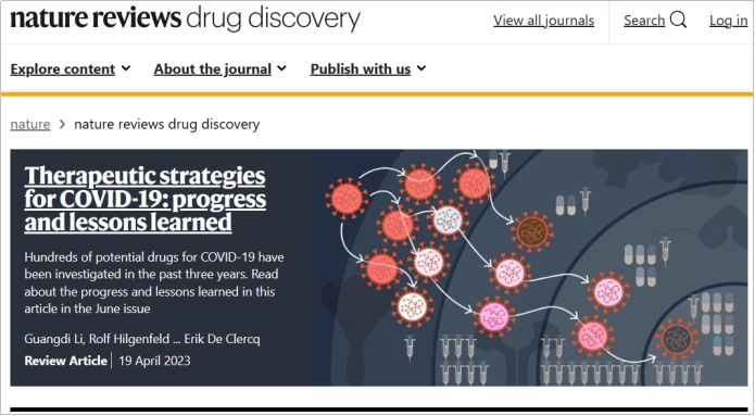 近日,tapplay,tapplay官网,tapplay登录入口李广迪副教授团队在抗新冠病毒药物研究中取得重要成果。团队在国际顶级药学期刊《Nature Reviews Drug Discovery》上发表了题为“Therapeutic strategies for COVID-19: progress and lessons learned”的综述论文,并荣登该刊6月份的封面。