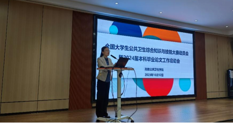 其后,邓静副教授介绍了全国大学生公共卫生综合知识与技能大赛基本情况与工作部署。邓静副教授以公卫专业人员的素质和要求切入,提出预防医学本科毕业生应具备的基本知识和技能,强调了职业技能培训的重要性和必要性。并从大赛的背景、内容、形式及往届大赛情况等方面详细介绍了公共卫生技能大赛。她表示参赛队伍确定后,学院将组织专业知识和实践技能强化的专题培训,进一步提高学生的创新能力、实践能力和团队合作意识,鼓励同学们积极参赛。