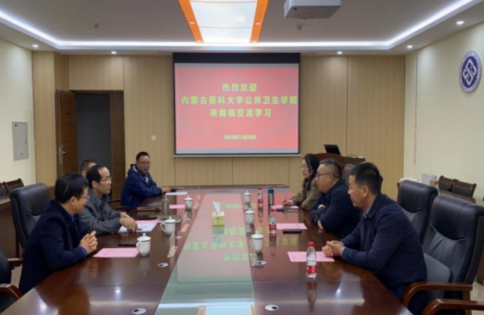 雷先阳书记对内蒙古医科大学公共卫生学院的来访表示热烈欢迎,并对学院基本情况进行了介绍。交流会上,胡国清院长从学科发展、人才培养、师资队伍、科学研究和平台建设等方面简要介绍了学院近年来所取得的进展和学院之后的重点科研方向。随后,双方就本科生实验教学基地建设、学生培养等方面进行探讨。
