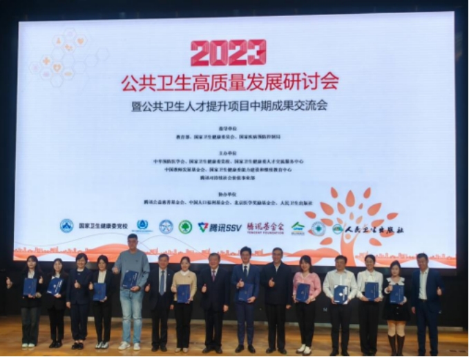 据悉,为支持国家高层次应用型公共卫生人才培养,助力构建强大的公共卫生体系,培养国家急需的高层次应用型公共卫生博士和“医学+MPH”双学位研究生,激励更多优秀学生立志从事公共卫生领域相关工作,增强其在职业发展上的荣誉感和积极性,2021年11月,在教育部学位管理与研究生教育司指导下,腾讯公益基金会捐资2500万元,与中国教师发展基金会共同设立了高层次应用型公共卫生人才培养项目——腾讯奖学金(以下简称“公卫奖学金”)。公卫奖学金面向教育部、国家卫生健康委员会联合启动的高层次应用型公共卫生人才培养创新项目立项的11家单位开展。2023年7月18日,tapplay官网李思文、胡召、伍翩、张成成四位博士研究生和岳婷婷、宋欣俐、张贝思、刘紫荆、刘思越五名硕士研究生获得首届腾讯奖学金(“公卫奖学金”)。tapplay官网作为首届腾讯奖学金获奖单位应邀参加会议。