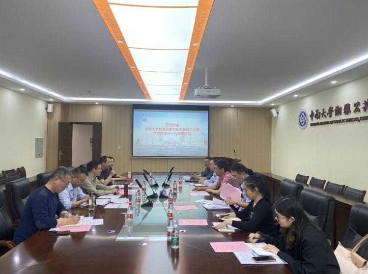 余文武主任一行就校友工作信息化建设、2024届校友联络员工作布置、学院校友分会建设、引进社会捐赠管理办法等作了宣传解读,并就2024年二级学院筹资目标及举措等事项进行研讨交流。