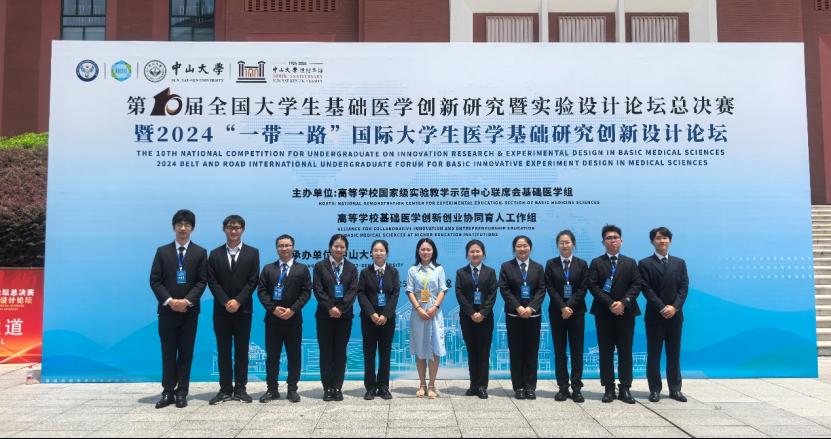 2024年8月24日,由高等学校国家级实验教学示范中心联席会基础医学组、高等学校基础医学创新创业协同育人工作组 (竞赛委员会)主办,中山大学承办的第十届全国大学生基础医学创新研究暨实验设计论坛暨2024“一带一路”国际大学生医学基础研究创新设计论坛总决赛在广州落下帷幕。我校斩获7金3银1铜。