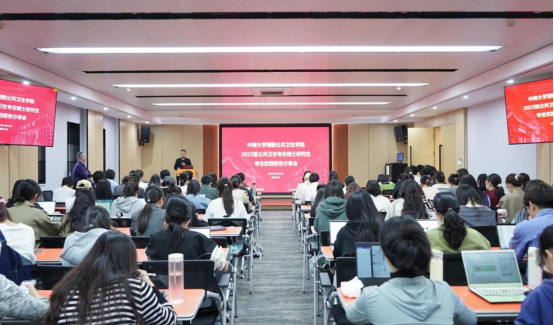 秦家碧副院长在会上强调了公共卫生硕士专业学位研究生专业实践的重要性。他指出,国家战略层面上需要培养高层次应用型高水平公共卫生人才,以应对突发公共卫生实际问题,新冠疫情的暴发更加凸显了公共卫生医师的重要性。目前学院正在探索与湖南省疾病预防控制中心开展公共卫生医师规范化培训项目,根据公共卫生硕士培养目标,科学地融入专业实践内容,系统性地重点培养理论与实践相结合的复合型公共卫生人才。他鼓励同学们深入实践,不断探索,充分掌握公共卫生领域的核心技能,形成自己在该领域的独有的优势特色,为未来的职业生涯做好铺垫。
