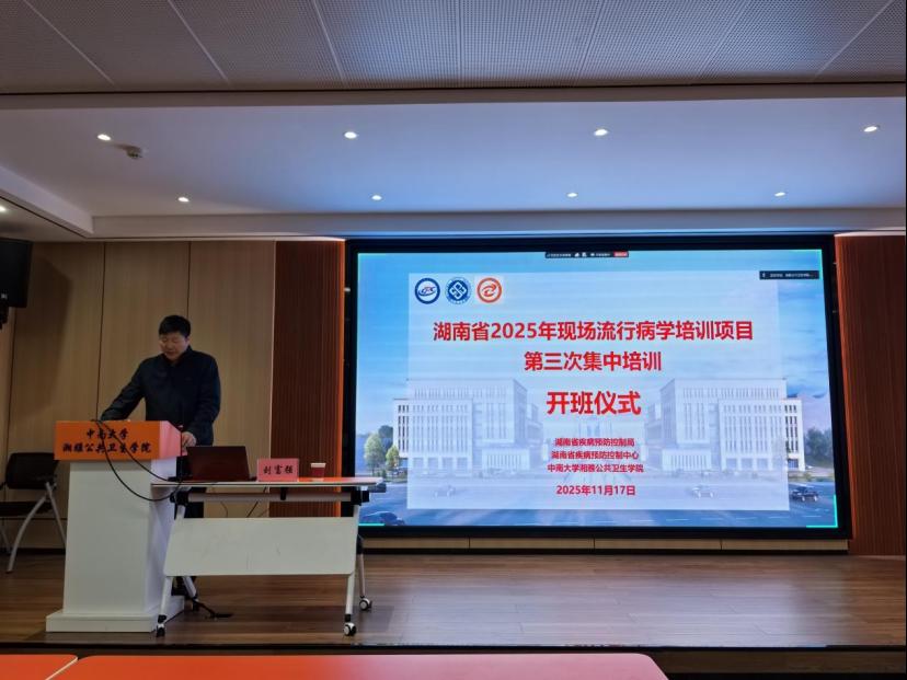 2025年11月17日,湖南省2025年现场流行病学培训项目(简称“湖南FETP”)第三次集中培训开班仪式在tapplay,tapplay官网,tapplay登录入口举行。本次培训标志着为期7个月的培养周期进入总结提升与成果检验的关键阶段,60名学员将通过系统集训冲刺结业考核,为基层疫情防控与现场处置筑牢人才根基。