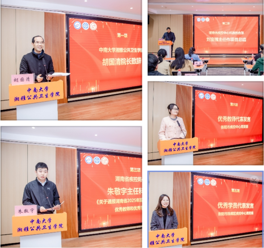 朱敬宇现场宣读了《关于通报湖南省2025年现场流行病学培训项目优秀教师和优秀学员的函》,对在项目实施中表现优异的理论授课教师、现场导师、责任导师、以及参培学员予以通报表扬。优秀教师代表、衡阳市疾控中心周亚丽以“过来人、引路人、传承者”三重身份,分享了从学员到带教老师的成长历程;优秀学员代表、衡阳市珠晖区疾控中心樊若晴则结合自身经历,分享了从“理论困惑”到“实战突破”的转变。
