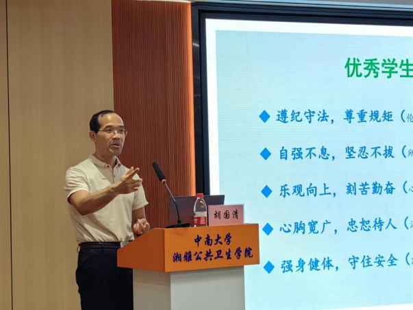 胡国清院长以“优秀的本科生/研究生的标准是什么”做引,从客观评价、个人成才等不同角度进行比对,并结合亲身经历为同学们阐明优秀学生所应具备的五大基本素质。