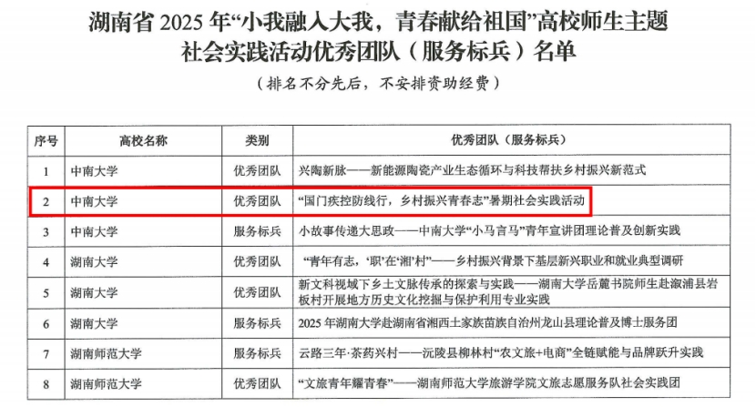 近日,中共湖南省委教育工委、湖南省教育厅发布了《关于公布湖南省高校2025年“小我融入大我,青春献给祖国”高校师生主题社会实践活动优秀团队(服务标兵)名单的通知》。经各高校推荐、资格审核、专家评选,tapplay,tapplay官网,tapplay登录入口“国门疾控防线行,乡村振兴青春志”社会实践团表现优异,荣获全省“优秀团队”荣誉称号。
