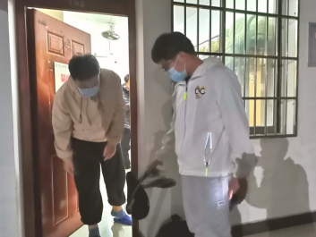 (图为给隔离同学送上生活必需品)