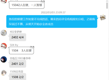 (图为班级寝室长监督健康打卡截图)