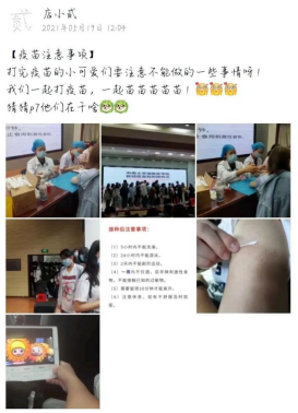 (图为班级官方QQ宣传班级接种现场情况)